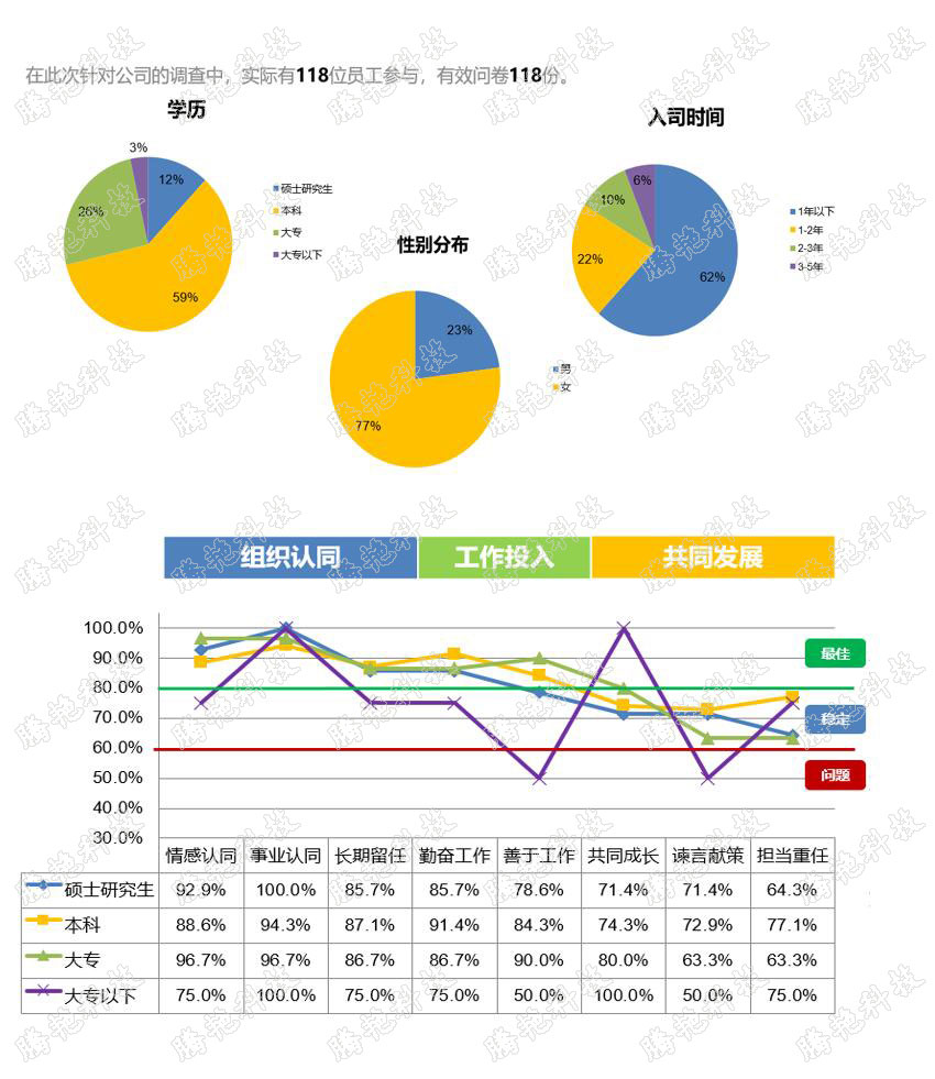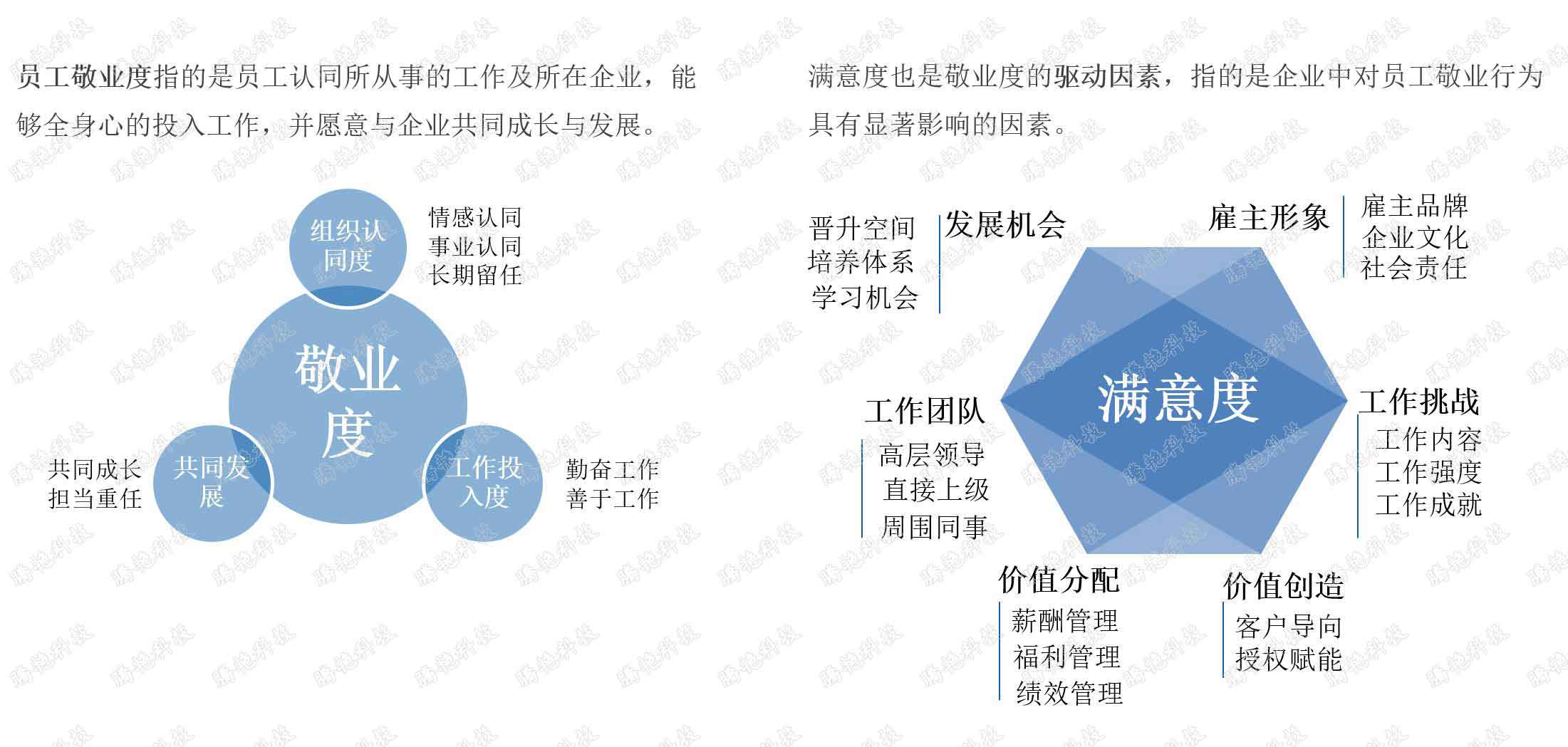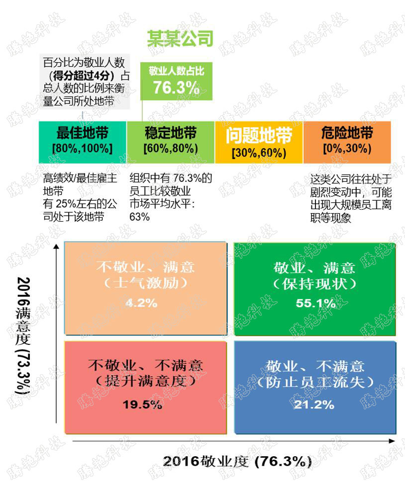 满意度调研针对的对象是员工对企业感知,而敬业度调研更关注员工目前和未来的工作状态,进而从人员管理角度出发预测未来企业经营状况,这有别于传统的财务测算。