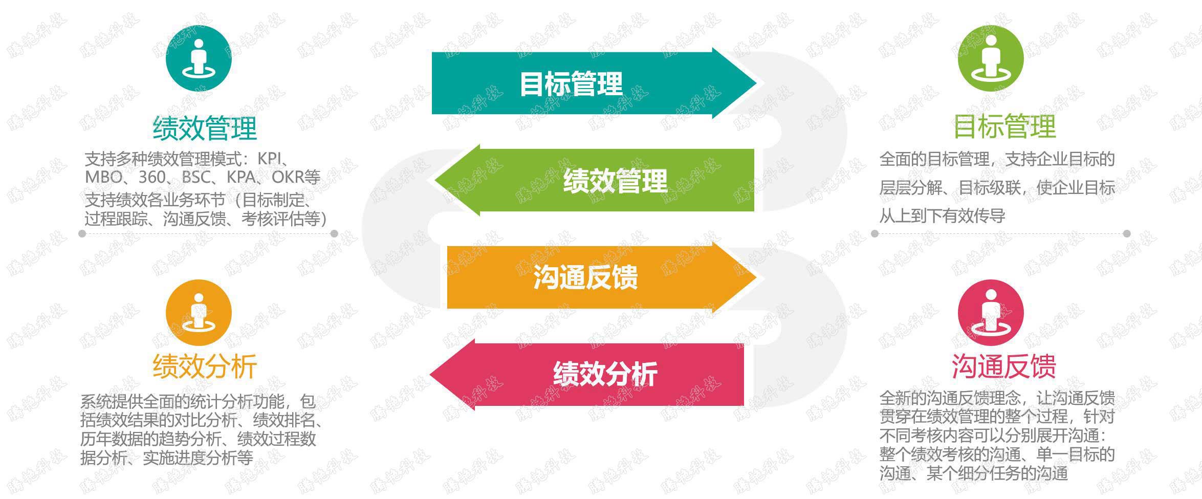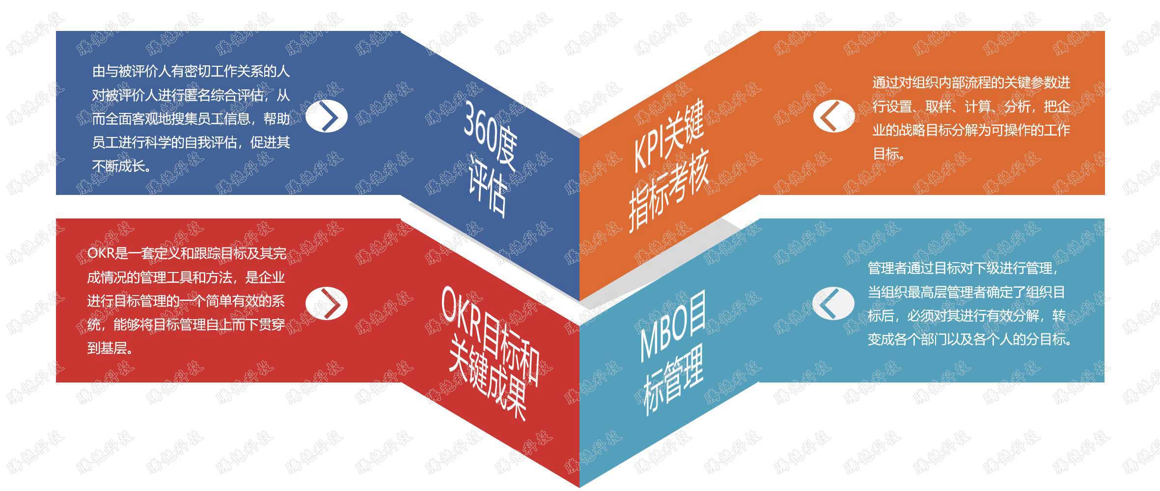 通过对组织内部流程的关键参数进行设置、取样、计算、分析,把企业的战略目标分解为可操作的工作目标,并融合了多种考核方法,如:分档评定、直接打分、两两对比、选优及归一算法,最终结果沟通确认,以此促进绩效反馈。